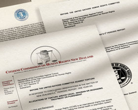 Il CCHR ha esercitato pressioni per un efficace controllo degli psichiatri da parte del governo e, incontrando nuovamente inerzia, ha presentato una relazione dettagliata al Comitato delle Nazioni Unite contro la tortura presso la sede delle Nazioni Unite a Ginevra. È stato così che nel maggio del 2013 una squadra investigativa delle Nazioni Unite è arrivata in Nuova Zelanda per il primo esame ufficiale dei luoghi di reclusione del paese.