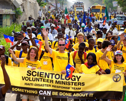 Fra i primi soccorritori ad arrivare da ogni parte del mondo per prestare soccorso a quella nazione devastata, c’erano trecentocinquanta Ministri Volontari di Scientology. Gli Scientologist avevano immediatamente noleggiato un aeroplano da New York per trasportare medici, infermieri e personale di pronto soccorso ad Haiti, accompagnati da Ministri Volontari che fornissero servizi di supporto alle squadre mediche ed altra assistenza necessaria.